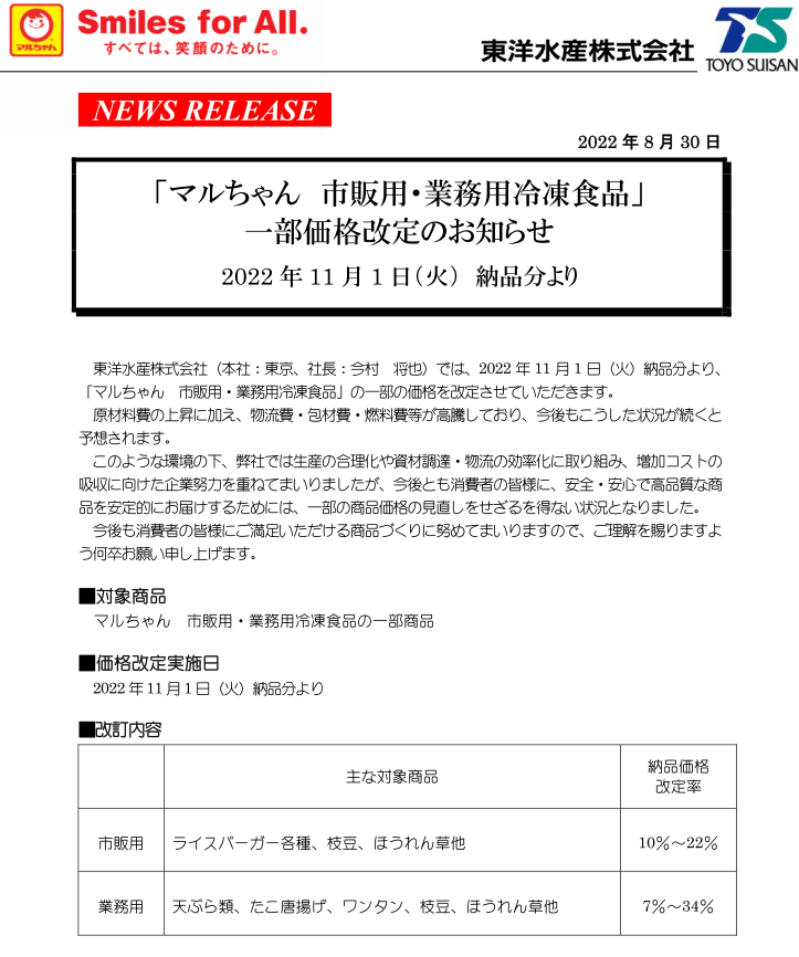 即席めんで、去年の10月、今年の4月で値上げしてるにも関わらず、売上は加速してます。