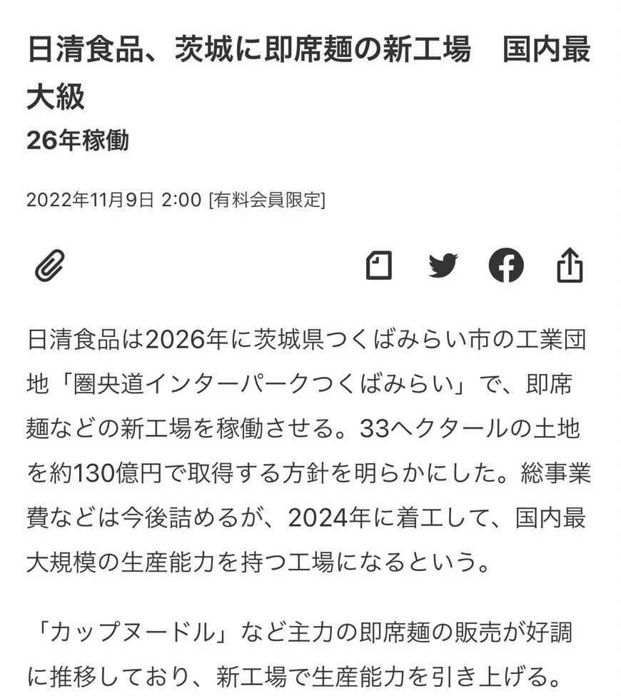 茨城県のつくばみらい市に巨大な新工場建設に投資します。