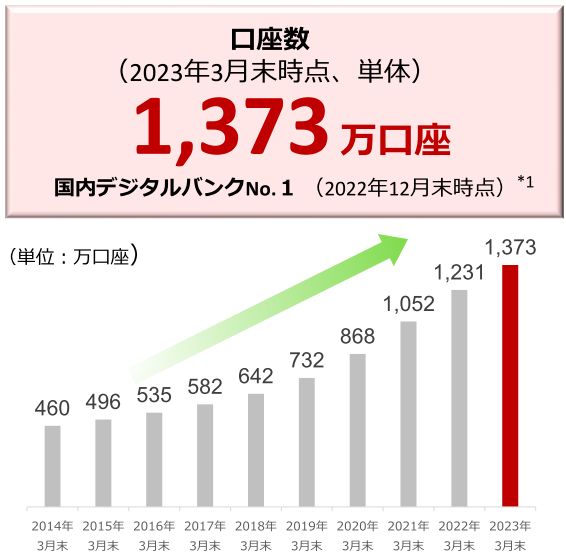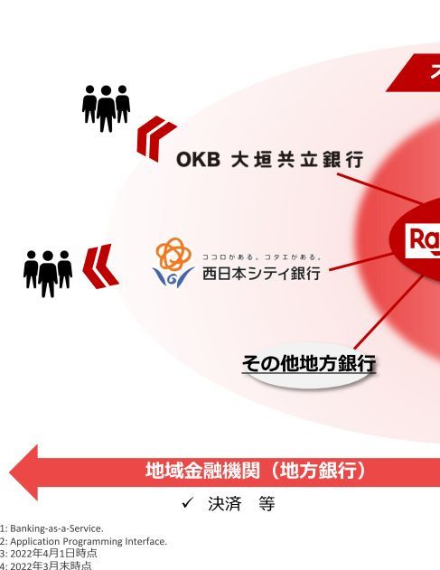 BaaSの預金サービス dスマートバンクでNTTドコモと組み、共通ポイントの付与のサービスで付加価値を与えて、スマホ決済のd払いの連携を進めて、利用者は23年中に10万人規模に成長見通しです。
