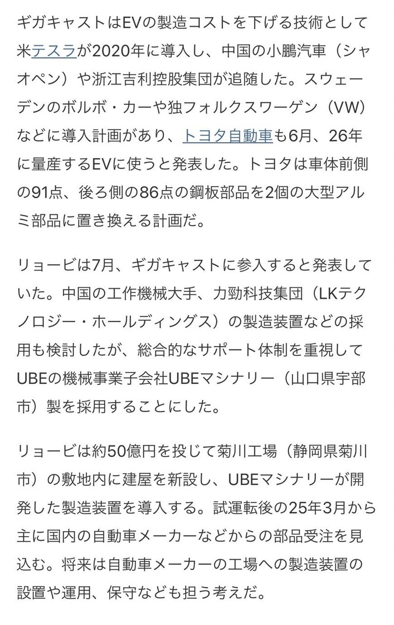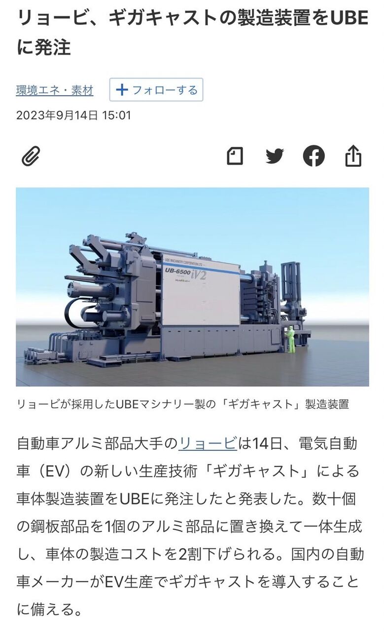 6月中旬に、トヨタ自動車が「ギガキャスト」導入検討と報道されました。