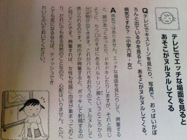 テレビでキスシーンを見たり、写真で、おっぱいがぽろんと出ているのを見ると、あそこがヌルヌルしてくる。病気ですか?